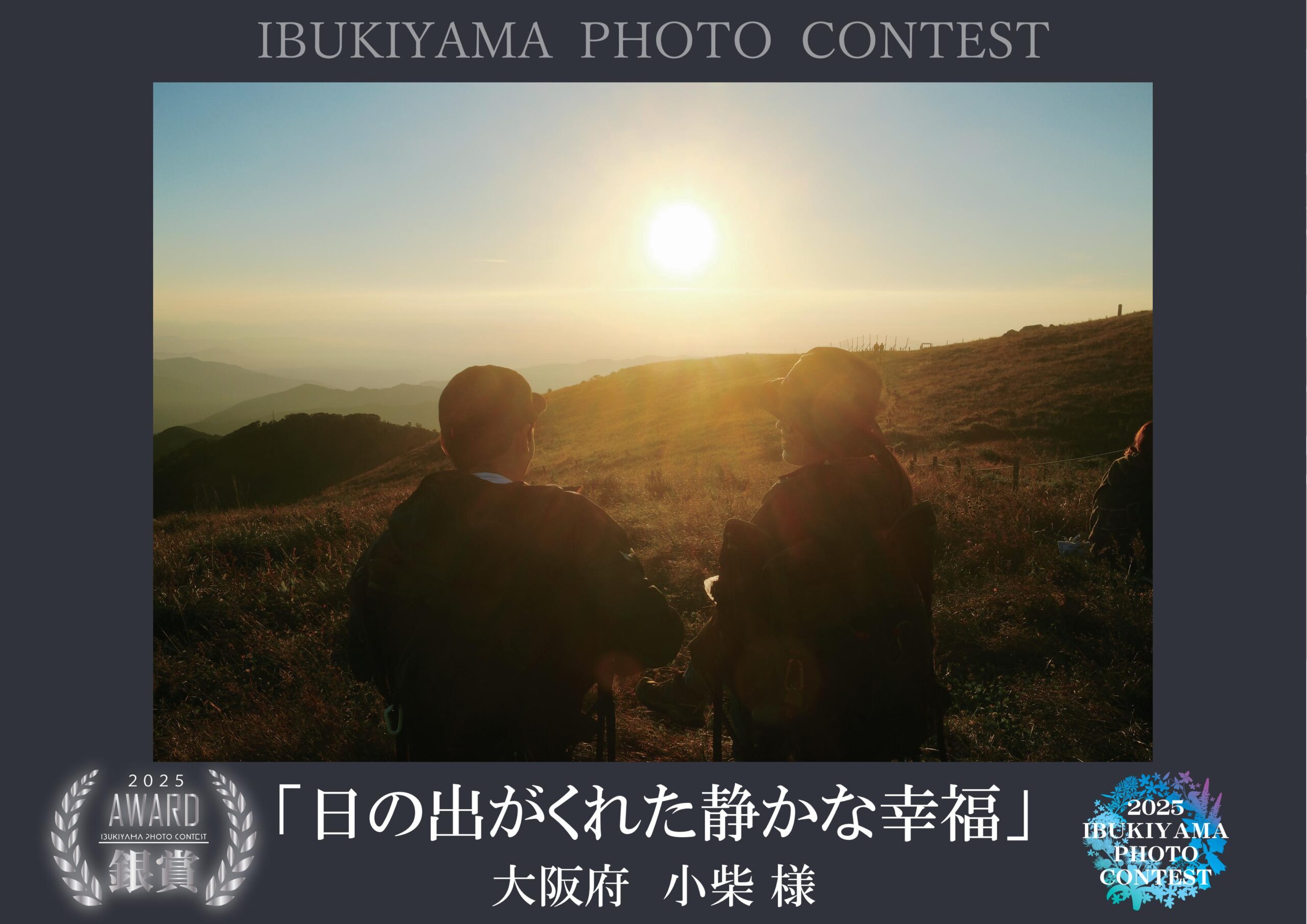 金賞作品と同じく、早朝の山頂の様子を捉えた作品ですが、こちらはとてもリラックスした雰囲気。タイトルのとおり、やわらかい朝日に照らされたおふたりの“静かな幸福”を感じさせる一枚です。伊吹山は自然の厳しさを教えてくれる山ですが、時として夢のような至福の時間も生み出してくれる、そんな魅力的な山であることを教えてくれる作品です。