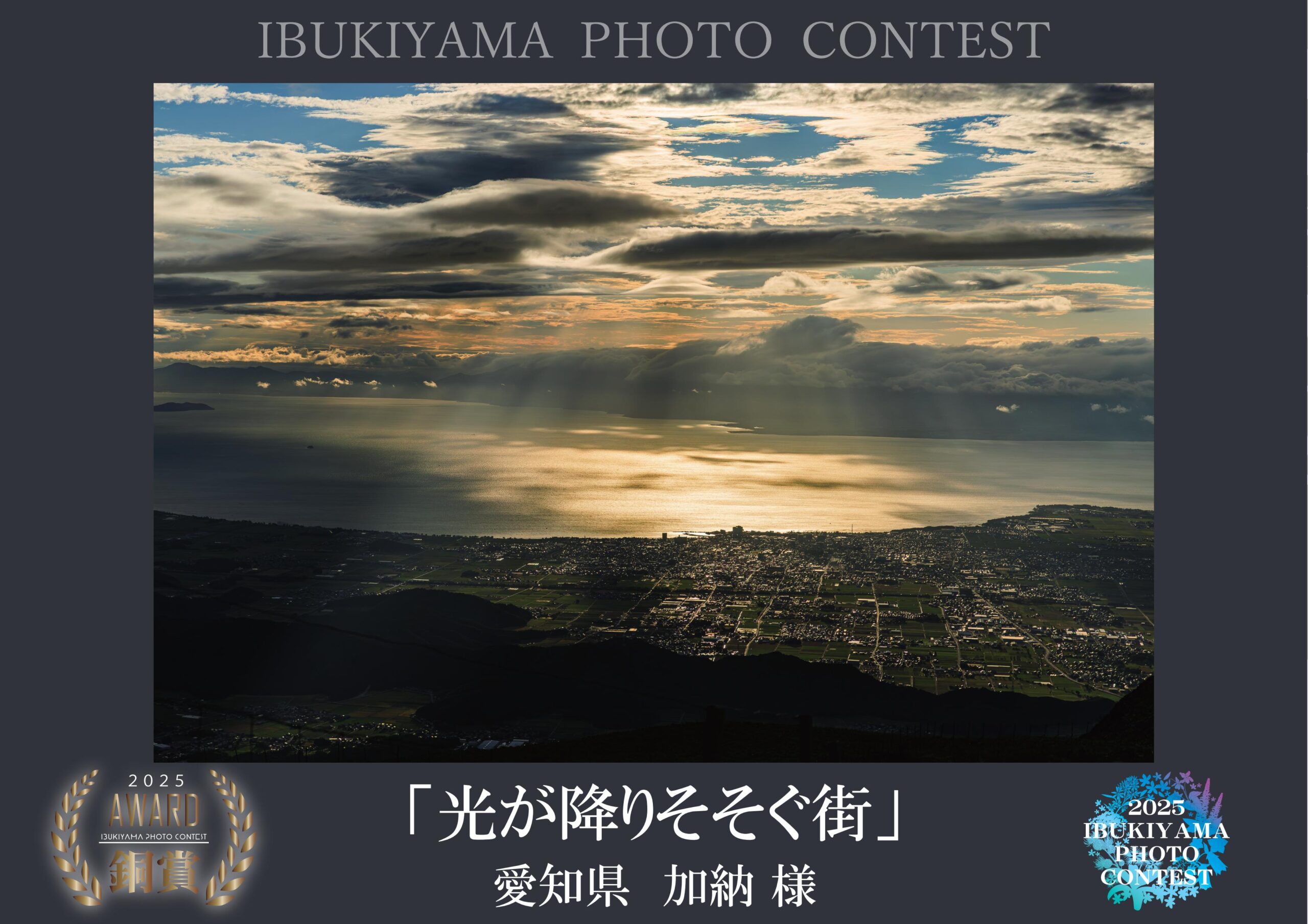 今年の金賞は、夜明けの雲海が麓の街を飲み込んでいくような様子を捉えたドラマティックな作品となりました。夜明けとともに目を覚ました雲が一斉に動き出したような躍動感を感じます。決して高い山ではない伊吹山ですが、非日常的な景色を気軽に見せてくれる、伊吹山は厳しい自然環境を持ちながらもフレンドリーな山です。今回のコンテストは早朝の景色が多く非常に悩みましたが、一目でこの場所に行くたくなる気持ちにさせられる本作品に決めさせていただきました。