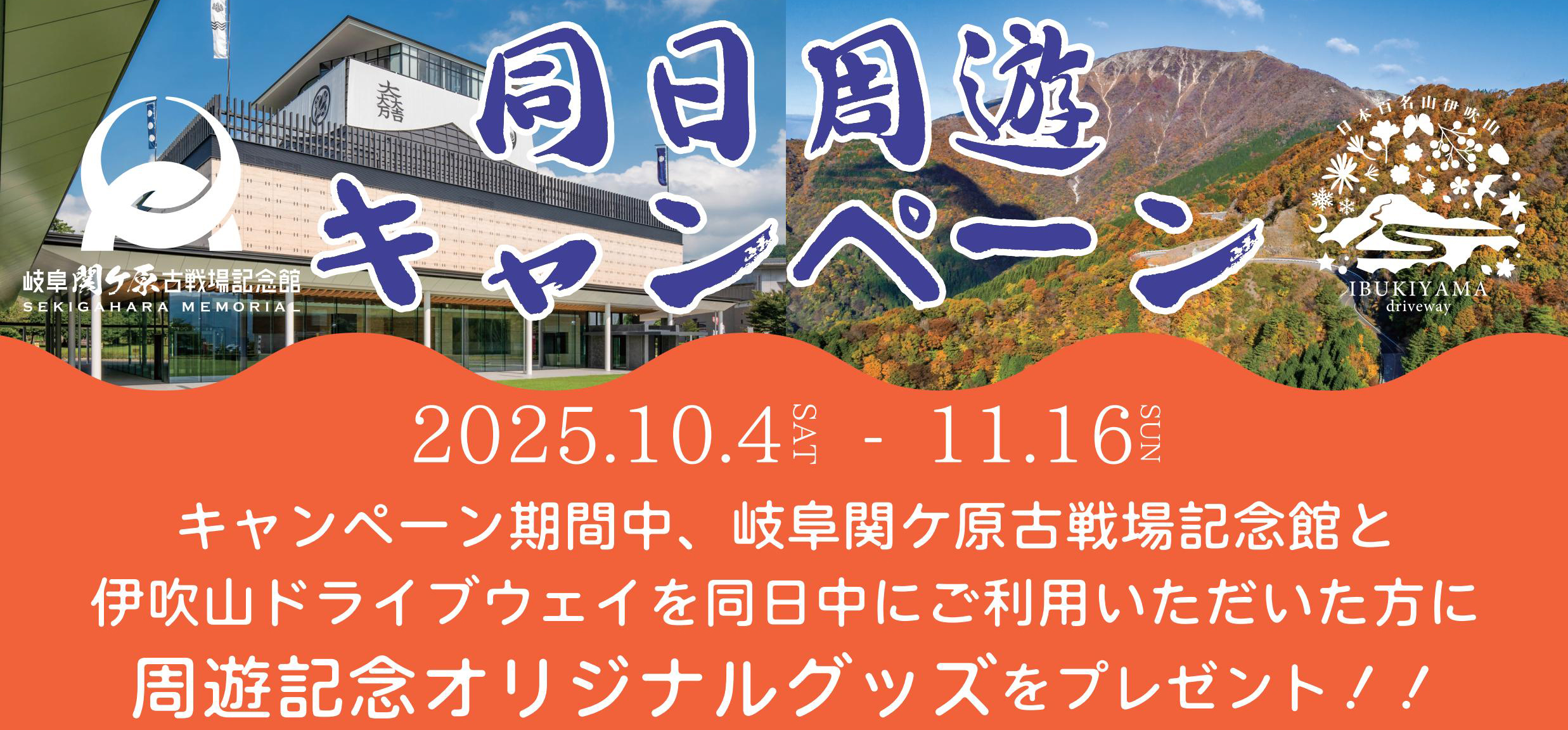 伊吹山ドライブウェイと岐阜関ケ原古戦場記念館(以下、「記念館」)は、広域周遊観光において連携した取り組みを推進しています。