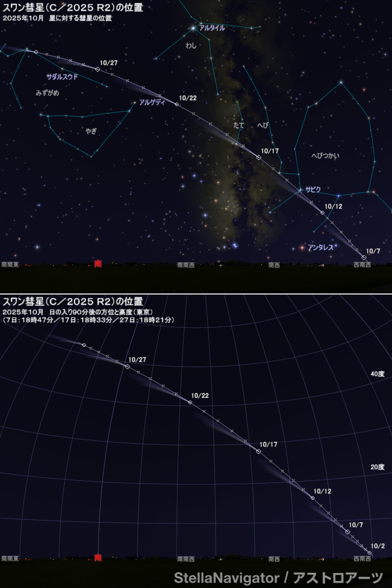 画像:アストロアーツ「2025年10月 スワン彗星が6等前後」より