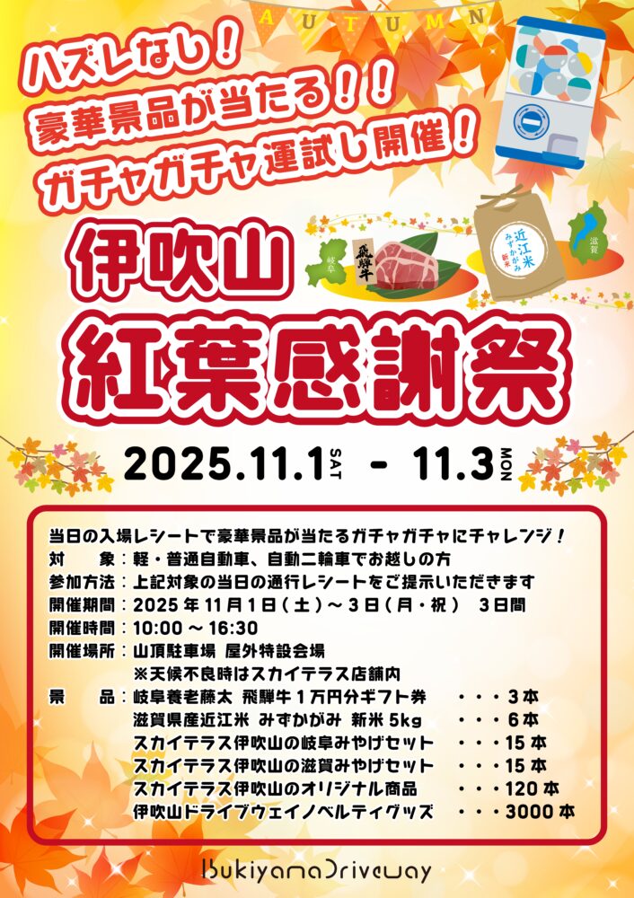 【予告】伊吹山紅葉感謝祭(11.1~11.3)≪ガチャガチャ運試し開催!≫